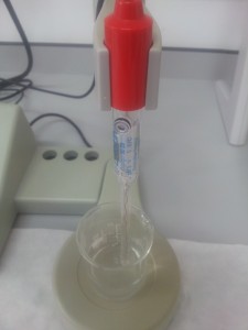 Imagen detallada de un electrodo para la medida del pH en una disolución en el laboratorio químico.